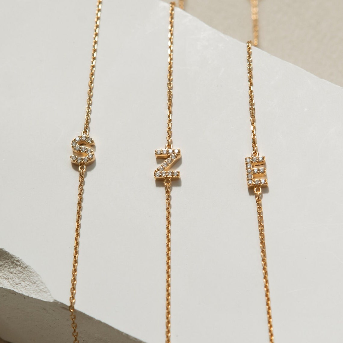 Our dainty Bianca Initial Bracelet features a sideways pavé letter studded with cubic zirconia stones, letting you show off a favorite initial or number. The delicate chain makes it great for layering and for everyday wear. Gift that special someone this heartfelt bracelet for any occasion, from engagements and anniversaries, to birthdays or holiday gatherings.